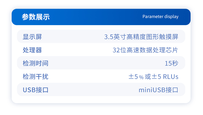手持atp荧光检测仪主要参数: